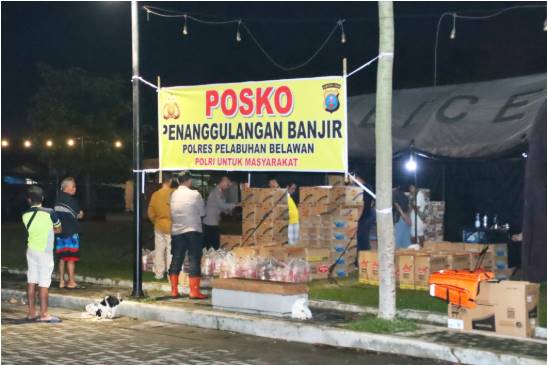 Polres Pelabuhan Belawan Dirikan Posko Bantuan Korban Banjir di Taman Warna-Warni Martubung