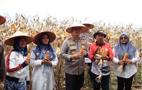 Kegiatan panen raya berlangsung dengan lancar dan diakhiri dengan sesi foto bersama serta peninjauan langsung hasil panen jagung oleh Kapolres dan tamu undangan. (Ayu)