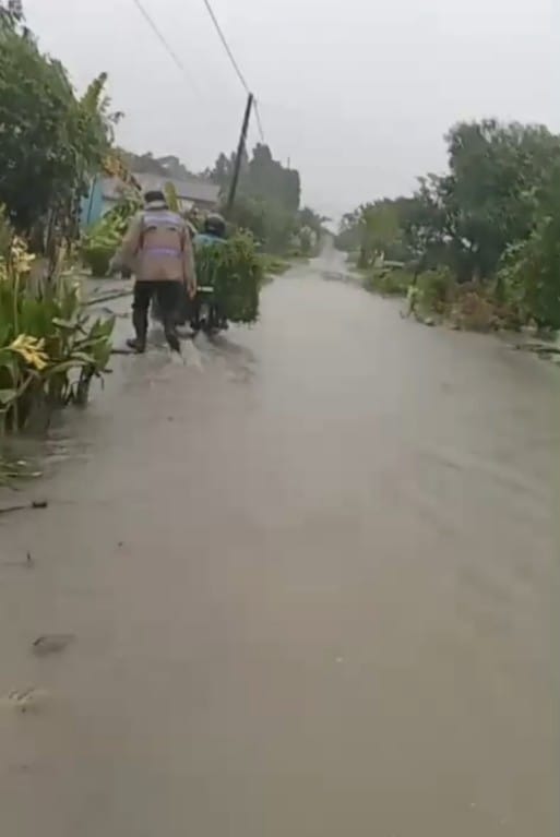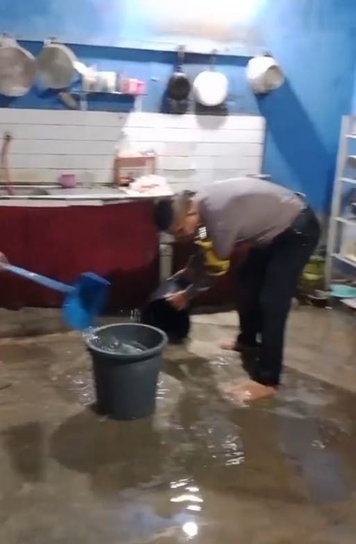 Dalam kesempatan tersebut, petugas Bhabinkamtibmas juga secara aktif memberikan himbauan kepada masyarakat agar selalu waspada terhadap kondisi banjir dan potensi bahaya di sekitar.