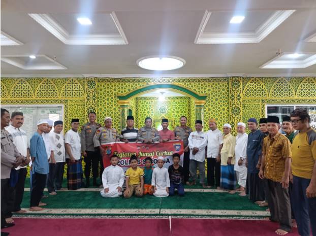 SIBOLGA, TOPKOTA.co – Dalam rangka menyampaikan pesan-pesan Kamtibmas serta mempererat silaturahmi antara Polri dan masyarakat, Kepolisian Resor (Polres) Sibolga melaksanakan kegiatan *“Jumat Curhat”* bertempat di *Masjid Taqwa Muhammadiyah Sibolga Sambas*, Jalan S.M. Raja, Kelurahan Pancuran Kerambil, Kecamatan Sibolga Sambas, Kota Sibolga, pada Jumat (31/10/2025).