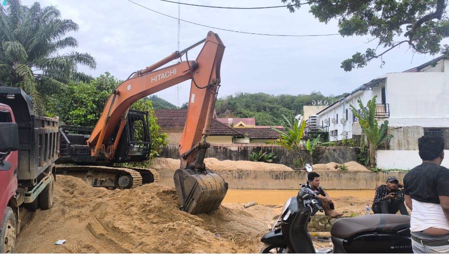 6. Satu unit alat berat eskavator mini (beko loader) beroperasi di Jalan Dolok Martimbang, Kelurahan Huta Tongatonga, Kecamatan Sibolga Utara, Kota Sibolga.
