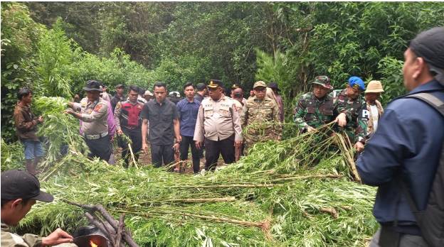 “Selanjutnya, kita melakukan pencabutan pohon ganja sebanyak 400 batang dari lokasi, kemudian dilakukan pemusnahan dengan disaksikan perangkat desa dan masyarakat setempat. Sebanyak 15 batang disisakan untuk keperluan barang bukti,” terang Kapolres Tanah Karo.