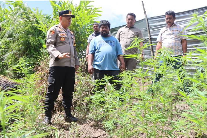 “Setelah pengakuan pelaku, petugas langsung melakukan pencabutan seluruh tanaman ganja dengan disaksikan oleh Kepala Dusun Desa Cinta Rakyat. Selanjutnya pelaku beserta barang bukti diamankan ke Satresnarkoba Polres Tanah Karo untuk proses hukum lebih lanjut,” jelas Kapolres, Sabtu(7/2) siang di TKP.