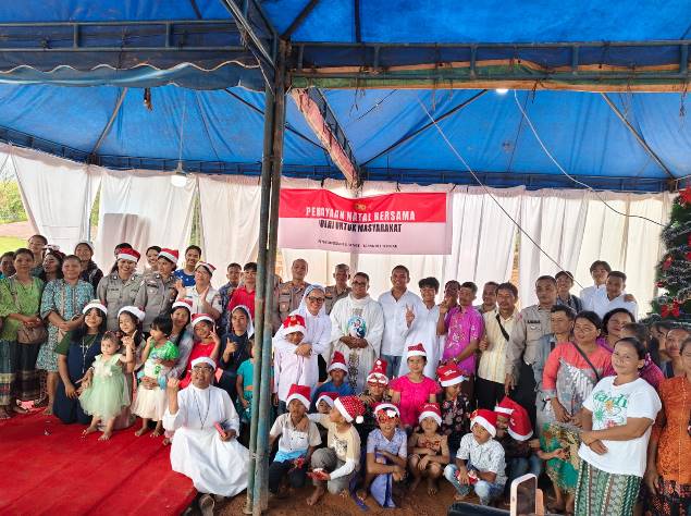 TAPTENG, TOPKOTA.co – Polres Tapanuli Tengah memfasilitasi Perayaan Natal bersama para pengungsi korban bencana alam di Posko Pengungsian Simpang Sipange, Hutanabolon, Kelurahan Tukka, Kecamatan Tukka, Kabupaten Tapanuli Tengah, Rabu malam (24/12/2025).