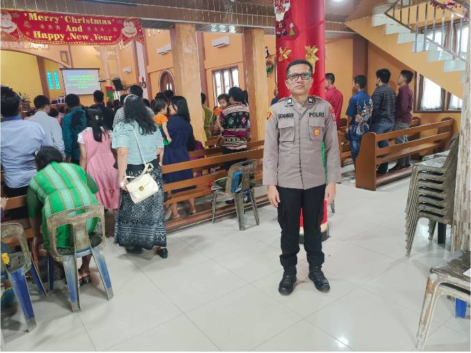 LIMAPULUH, TOPKOTA.co – Personil Polsek Lima Puluh melaksanakan PAM Ibadah Minggu di Gereja HKBP Lima Puluh, Minggu (22/2/2026). Kegiatan ini bertujuan untuk menciptakan situasi kamtibmas yang aman dan kondusif serta mencegah terjadinya curanmor.