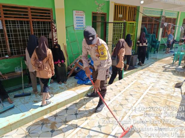 “Seluruh personel Polsek Serbalawan turun langsung membantu pembersihan. Mereka bekerja bahu membahu bersama personel Koramil Serbalawan, Camat Dolok Batu Nanggar beserta staf, dan relawan dari PT Bridgestone,” tambah Kabag Ops.