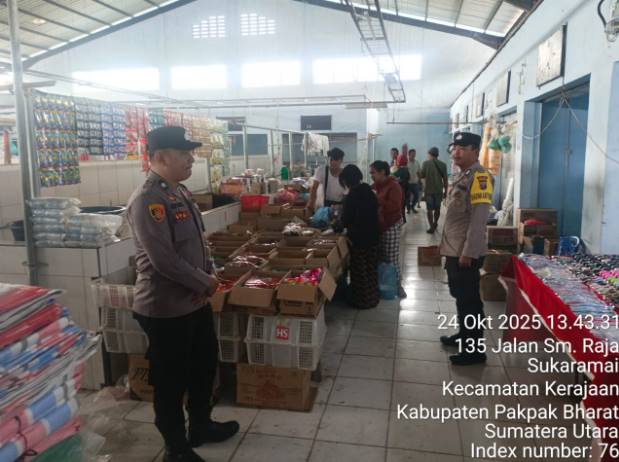SALAK, TOPKOTA.co – Polres Pakpak Bharat melalui Polsek Sukaramai melaksanakan KRYD di Pasar Rakyat/Onan Sukaramai untuk memastikan aktifitas masyarakat berjalan dengan aman baik dan lancar, Jumat 24 Oktober 2025 sekira pukul 13.30 s/d 14.30 wib.