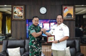 Ketua DPW PWOIN Sumut Rajendra Sitepu, Sekretaris DPW PWOIN Sumut Horas Sianturi SH,ketua OKK PWOIN Sumut Hendra dan rombongan di sambut dengan ramah oleh KAPEMDAM I/BB Kolenel Donald Silitonga.