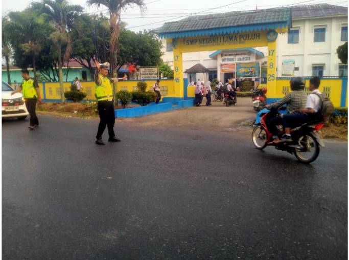 Sat Lantas Polres Batubara Laksanakan Pengaturan Pagi di Depan SMPN 1