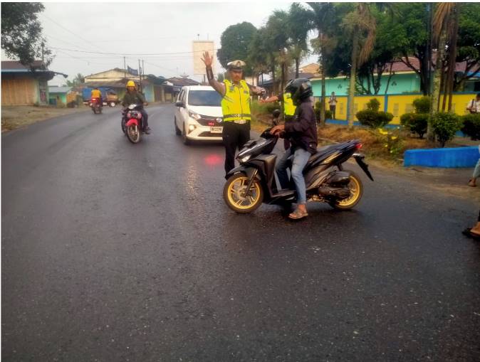Kegiatan ini dipimpin oleh AIPDA GAOL dan BRIPKA ALDO, dengan tujuan untuk menjaga keamanan dan ketertiban di jalan.