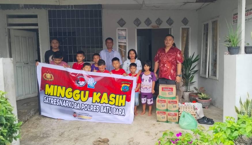Satresnarkoba Polres Batu Bara memberikan bantuan berupa sembako kepada anak-anak yatim piatu yang berada di Panti Asuhan Rumah Kasih Gunung Sion. Selain itu, para personel juga memberikan himbauan terkait bahaya narkoba kepada anak-anak tersebut.