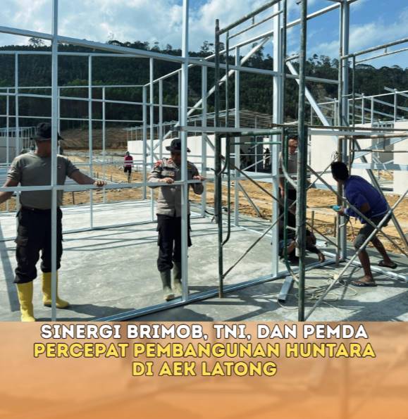 Sinergi Brimob, TNI, dan Pemda Percepat Pembangunan Huntara di Aek Latong