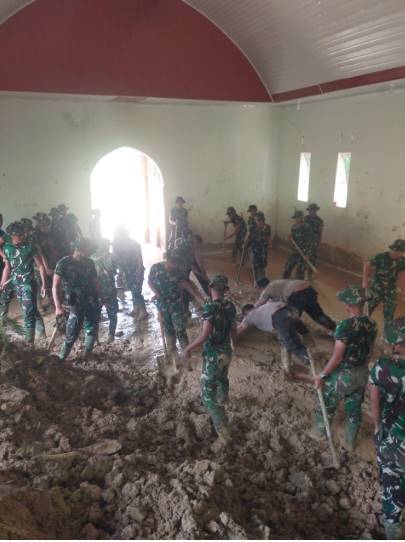 Pemerintah Kabupaten Pakpak Bharat bersinergi dengan Kodim 0206/Dairi, Batalyon Infantri TP 906 / SGL dan Polres Pakpak Bharat hadir di Gereja St. Fransiskus Assisi membantu masyarakat setempat bersama – sama membersihkan sisa tanah akibat bencana longsor yang terjadi beberapa hari yang lalu, Pemerintah Kabupaten Pakpak Bharat mendatangkan alat berat berupa Backhoe membersihkan bagian belakang dan samping dari bangunan Gereja, sedangkan Personil Batalyon Infantri TP 906 / SGL bersama Personil Polres Pakpak Bharat bahu membahu membersihkan bagian dalam gereja tersebut, menggunakan cangkul, Skop Angkong dan alat Sorong lumpur yang di buat menggunakan papan dan broti.