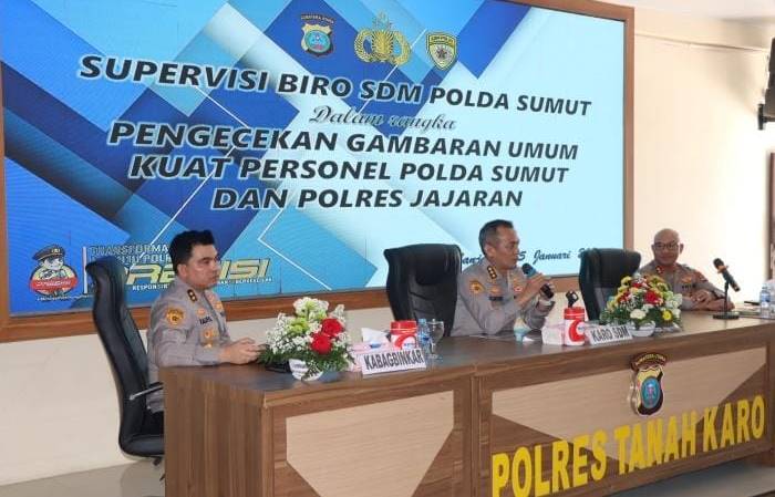 KARO, TOPKOTA.co – Biro Sumber Daya Manusia (SDM) Polda Sumatera Utara melaksanakan supervisi serta memberikan arahan di Polres Tanah Karo, Minggu (25/1) pukul 12.00 WIB, bertempat di Aula Pur Pur Sage, Mapolres Tanah Karo.
