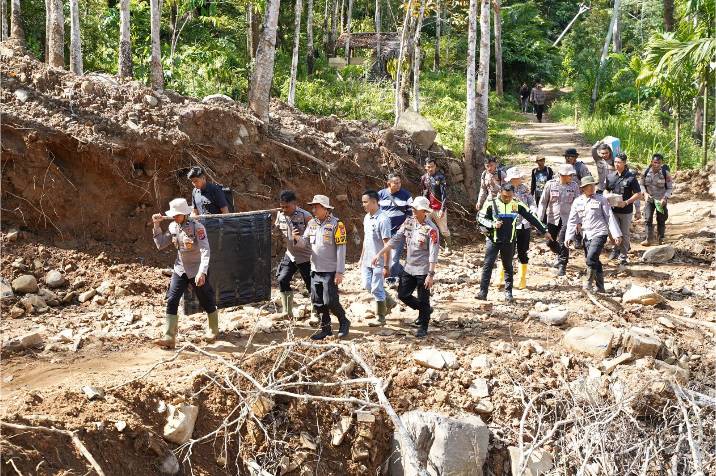 “Kondisinya cukup menantang. Sedikitnya ada tiga jembatan utama yang putus menuju Desa Sialogo. Personel harus ekstra hati-hati membawa peralatan karena jalur yang ada sangat sulit dilalui kendaraan biasa,” ujar AKBP Muhammad Alan Haikel di sela-sela kegiatan.