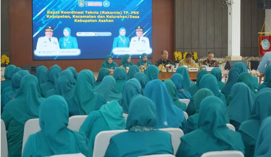 ASAHAN, TOPKOTA.co – Tim Penggerak (TP) PKK Kabupaten Asahan menggelar Rapat Koordinasi Teknis (Rakornis) pada hari ini yang diikuti oleh TP PKK tingkat kabupaten, kecamatan, kelurahan, dan desa. Kegiatan ini membahas secara khusus persiapan menghadapi sembilan lomba yang akan diikuti dalam waktu dekat. Rakornis tersebut dihadiri langsung oleh Bupati Asahan, Sekretaris Daerah Kabupaten Asahan, Organisasi Perangkat Daerah (OPD), para Camat se-Kabupaten Asahan, serta Ketua dan pengurus TP PKK Kabupaten, Kecamatan, Desa, dan Kelurahan yang bertempat di pendopo rumah dinas Bupati Asahan Kamis (12/02/2026).