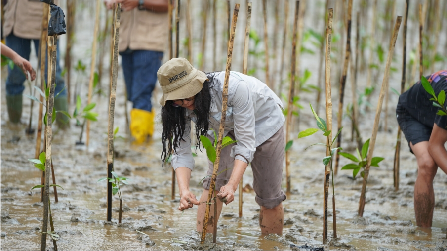 “Adapun hingga tahun 2030, target total yang dapat ditanam ialah 400.000 pohon, mencakup tanaman mangrove dan terestrial. Jadi kita melakukan inovasi teknologi berbarengan dengan bagaimana caranya kita bisa mengurangi karbon melalui penanaman,” ucap Yundi.