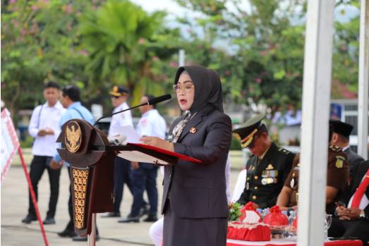 Dalam sambutannya, Wabup Iriane Iliyas menyampaikan bahwa di bawah langit Indonesia yang merdeka, seluruh rakyat menundukkan kepala dengan hormat mengenang jasa para pahlawan bangsa. Ia menegaskan bahwa para pahlawan bukan sekadar nama yang terukir di batu nisan, melainkan cahaya yang menerangi jalan bangsa hingga hari ini. Dari Surabaya hingga Banda Aceh, dari Ambarawa hingga Biak, para pahlawan berjuang bukan untuk dirinya sendiri, tetapi demi masa depan generasi penerus yang menikmati kemerdekaan saat ini. Iriane menekankan bahwa kemerdekaan tidak datang begitu saja, melainkan lahir dari kesabaran, keberanian, kejujuran, kebersamaan, dan keikhlasan.