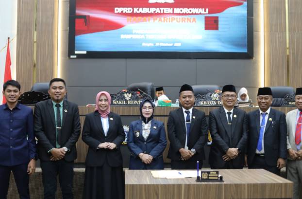 MOROWALI, TOPKOTA.co – Wakil Bupati Morowali, Iriane Ilyas, SE., menghadiri Rapat Paripurna ke-12 Masa Persidangan ke-I Tahun Sidang 2025–2026 Dewan Perwakilan Rakyat Daerah (DPRD) Kabupaten Morowali, dalam rangka Pandangan Umum Fraksi atas Rancangan Peraturan Daerah tentang Rancangan Anggaran Pendapatan dan Belanja Daerah (RAPBD) Tahun Anggaran 2026, bertempat di Ruang Rapat Paripurna DPRD Morowali, Kamis (16/10).