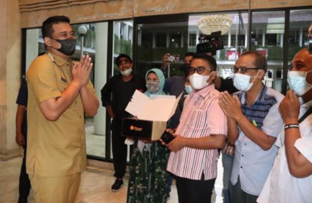 “Aamiiin, Aamiiin. Terima kasih, terima kasih,” ungkap Bobby Nasution senang bercampur haru.