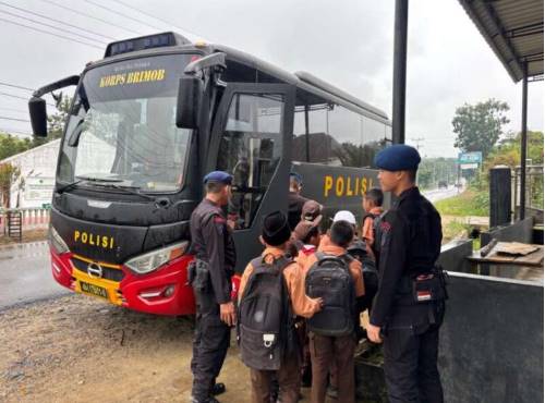Para siswa tampak gembira saat dijemput oleh personel berseragam Brimob, sementara para orang tua menyampaikan rasa terima kasih dan apresiasi atas perhatian yang diberikan kepada anak-anak mereka.