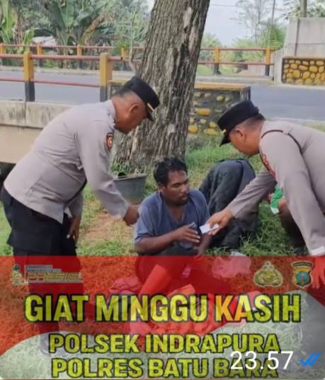 INDRAPURA, TOPKOTA.co – Kapolsek Indrapura, AKP Reynold Silalahi SH, diwakili oleh Waka Polsek Indrapura, IPTU M. Siregar,SH dan Personil Polsek Indrapura, melaksanakan kegiatan Minggu Kasih dengan memberikan bantuan sosial kepada masyarakat yang kurang mampu.