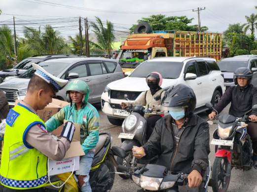 Kegiatan humanis menjadi sorotan pada H6. Aksi berbagi kue kepada pengendara — terutama mereka yang melengkapi kelengkapan berkendara dan mematuhi aturan — mendapat sambutan hangat dari masyarakat.